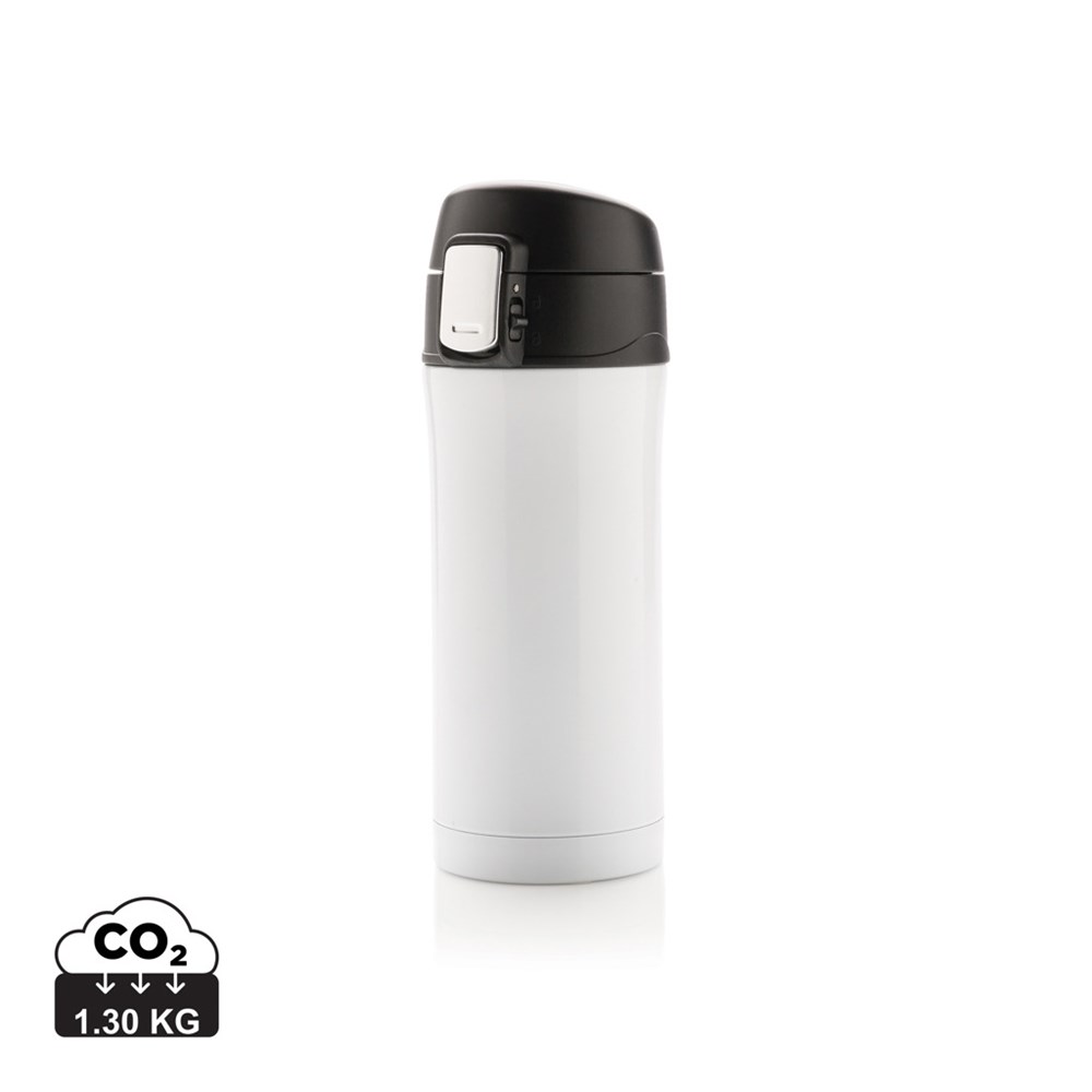 This great double wall stainless steel vacuum mug keeps your drink warm for up to 5 hours or cool for up to 15 hours. The lid is lockable and therefore avoids any risk of leaking or spilling. The lid is easy to keep clean for optimal hygiene and is dishwasher safe. The unique design of the mug allows you to drink conveniently and safely with one hand directly from the mug. The size of the mug is suitable to place in any car drink holder. Made with RCS (Recycled Claim Standard) certified recycled materials. RCS certification ensures a completely certified supply chain of the recycled materials. Total recycled content: 71% based on total item weight. BPA free. Capacity 300ml. Including FSC®-certified kraft packaging.