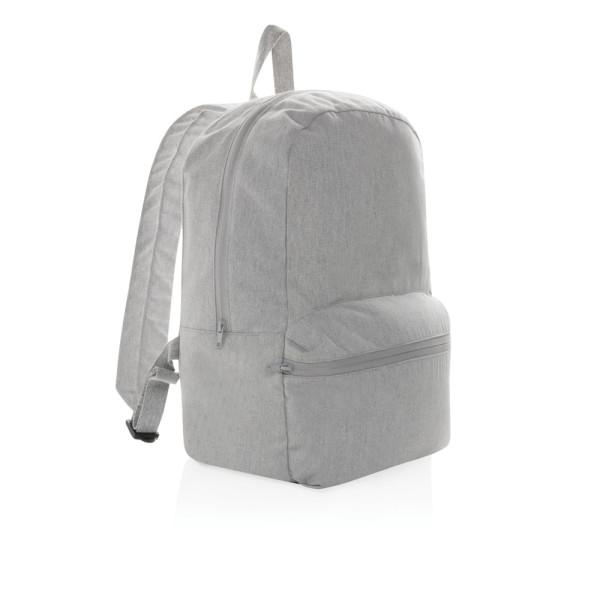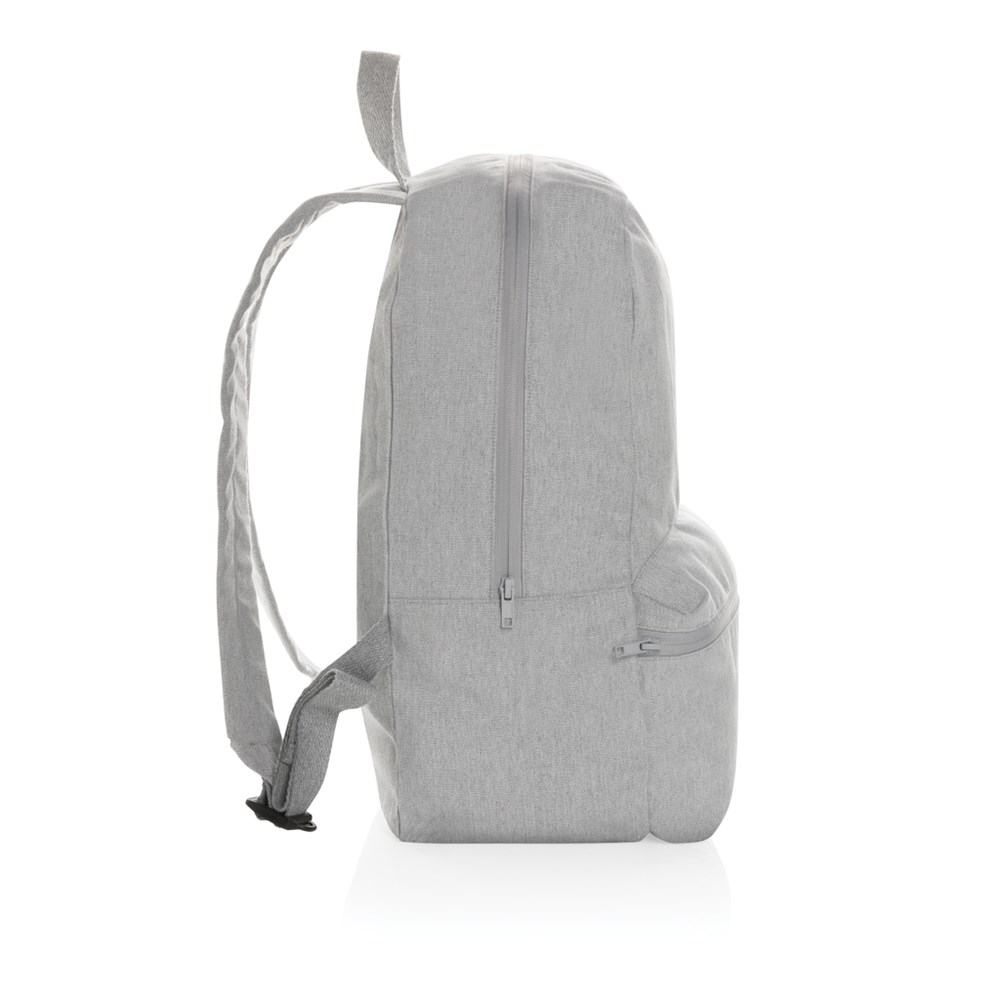 This 285 gsm recycled canvas backpack is a classic for everyday use. This bag features a spacious front and back pocket to hold your other daily essentials. The recycled canvas is undyed and used in its raw form, without chemicals from dyeing or bleaching. With AWARE™ tracer that validates the genuine use of recycled materials. 2% of proceeds of each Impact product sold will be donated to Water.org. Composition 70% recycled cotton and 30% recycled polyester.