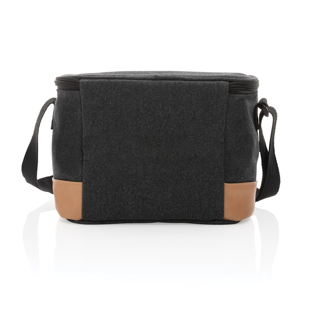 Pack your favourite food or beverages in this chic cooler bag! The cooler bag will easily fit 6 cans and features an open front pocket and handle for easy carrying. Made with high quality 16oz. recycled canvas and beautiful PU details. With AWARE™ tracer that validates the genuine use of recycled cotton. 2% of proceeds of each Impact product sold will be donated to Water.org. Composition 60% recycled cotton and 40% recycled polyester. Lining in PEVA.