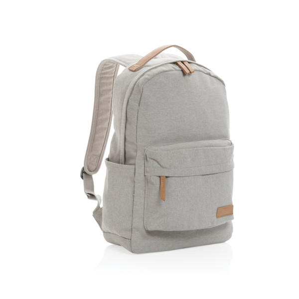 This 16oz. recycled canvas backpack is a classic for everyday use . This bag features a padded 14"laptop pocket and a spacious front and back pocket to hold your other daily essentials. 2% of proceeds of each Impact product sold will be donated to Water.org. Composition 60% recycled cotton and 40% recycled polyester. Lining in 150D recycled polyester.