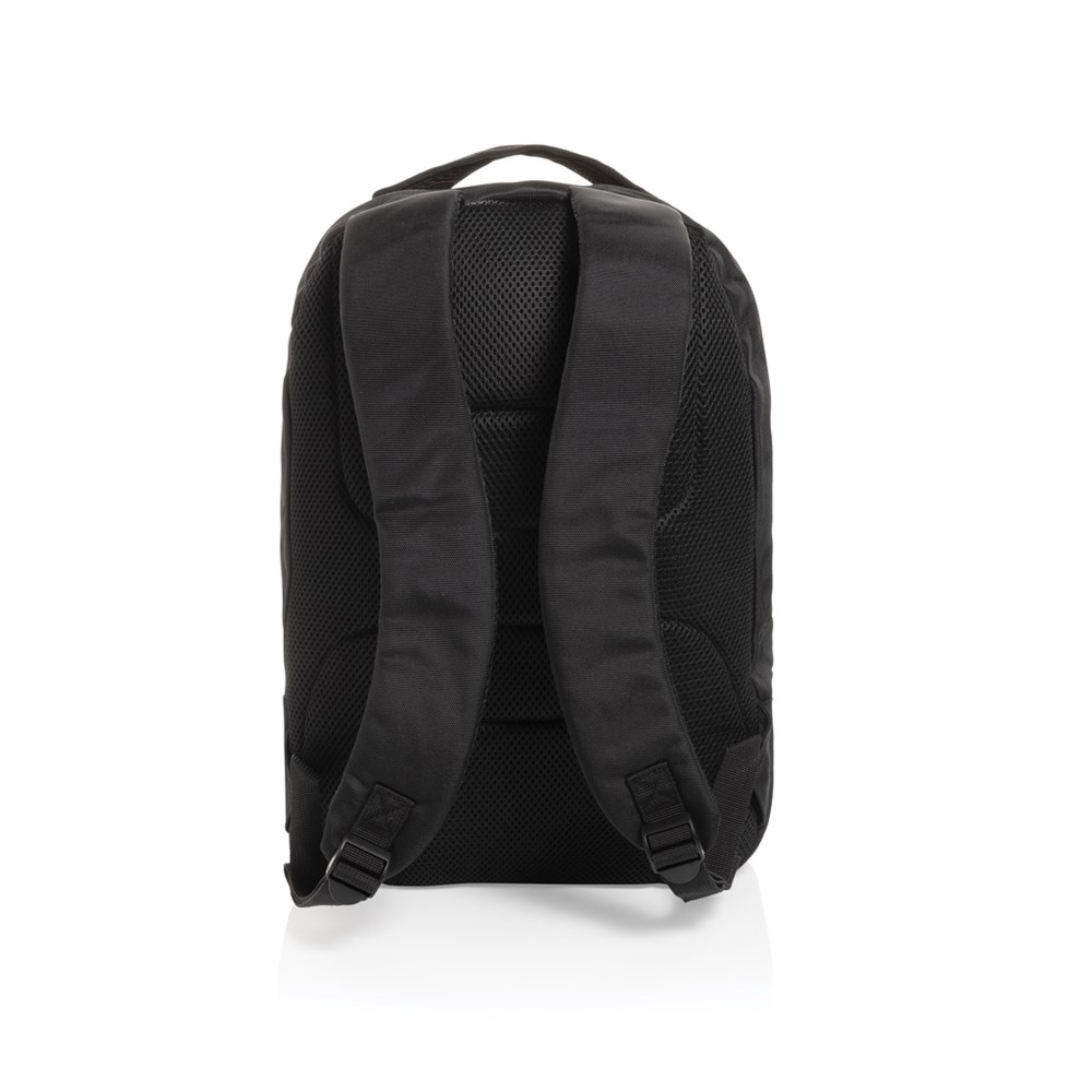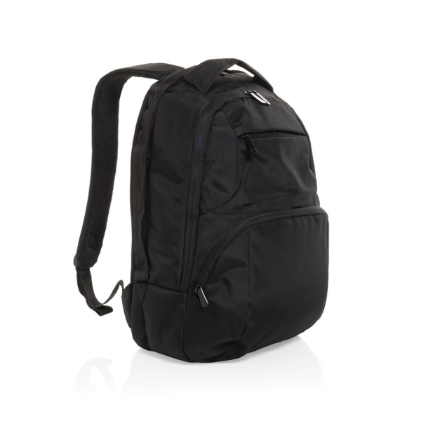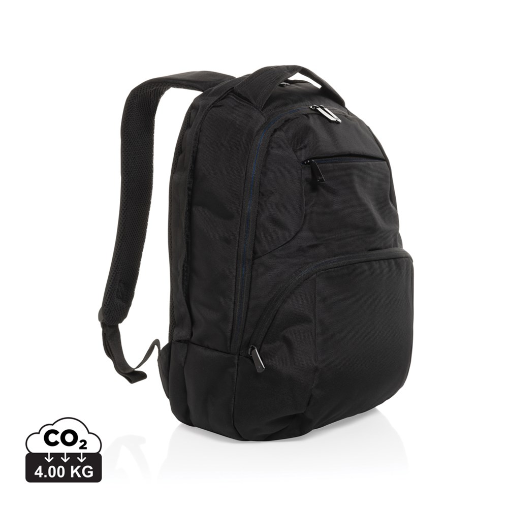 This Universal AWARE™ 1200D polyester laptop backpack is a true classic design with two main compartments. The backpack features a 15.6 inch laptop compartment and a zipper front pocket. . With AWARE™ tracer that validates the genuine use of recycled materials. Each bag has reused 37.4 0.5L PET bottles. 2% of proceeds of each Impact product sold will be donated to Water.org. PVC free.