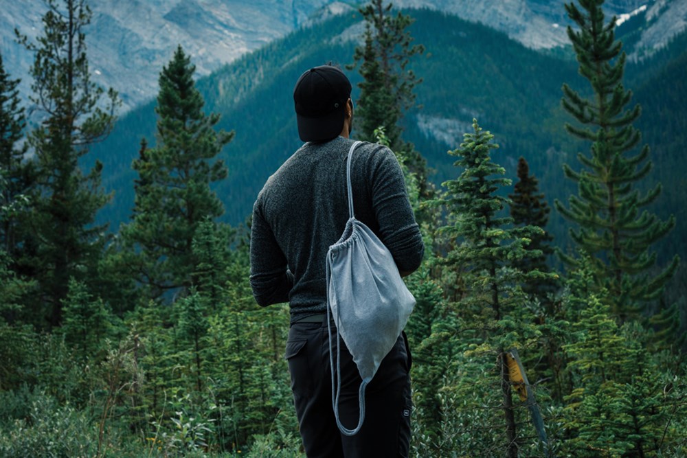 Impact AWARE™ recycled cotton drawstring backpack 145g