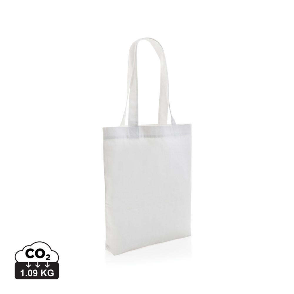 The Impact AWARE™ 285gsm recycled canvas tote bag undyed is the perfect way to carry your essentials wherever you go. This spacious tote provides sufficient space for all your daily needs. The recycled canvas is undyed and used in its raw form, without chemicals from dyeing or bleaching. With AWARE™ tracer that validates the genuine use of recycled materials. 2% of proceeds of each Impact product sold will be donated to Water.org. Composition 70% recycled cotton, 30% recycled polyester.