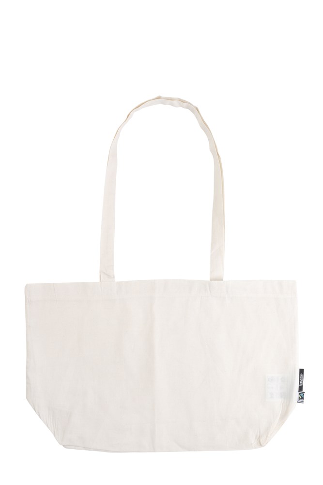 100% Organic Fairtrade Cotton - Canvas Weave - 120gsm. Lightweight Canvas weave - Long handles - Reinforced at stress points - Neutral® & Fairtrade flaglabels at side.