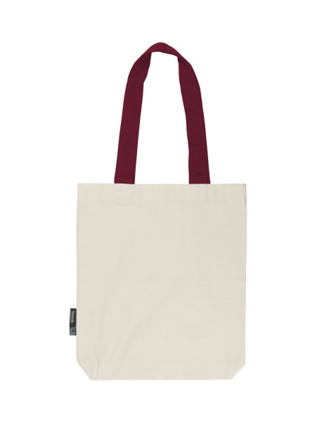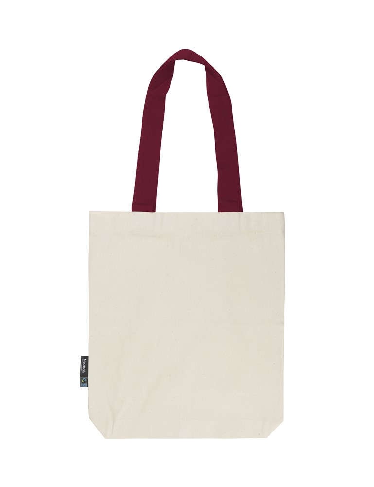 100% Organic Fairtrade Cotton - Twill Weave - 210gsm. Heavy Twill Weave - Long contrast handles - Reinforced at stress points - Bottom gusset - Neutral® & Fairtrade flaglabels at side.