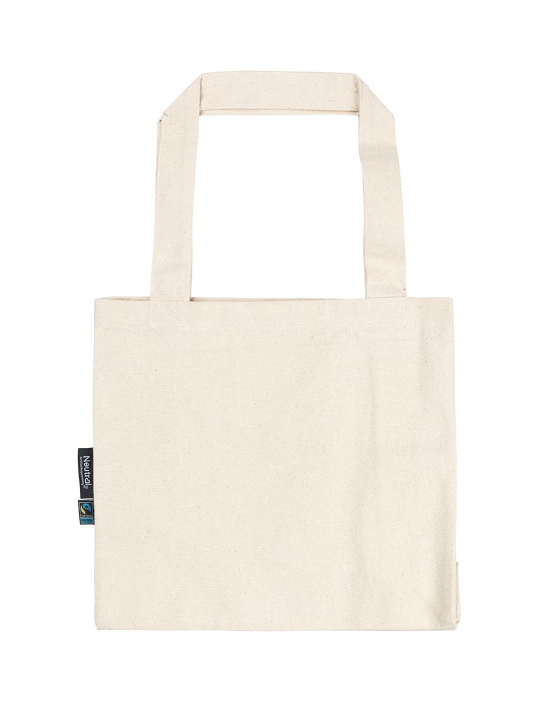 100% Organic Fairtrade Cotton - Panama Weave - 300gsm. Extra Heavy Panama Weave - Long handles - Reinforced at stress points - Bottom & side gusset - Neutral® & Fairtrade flaglabels at side.