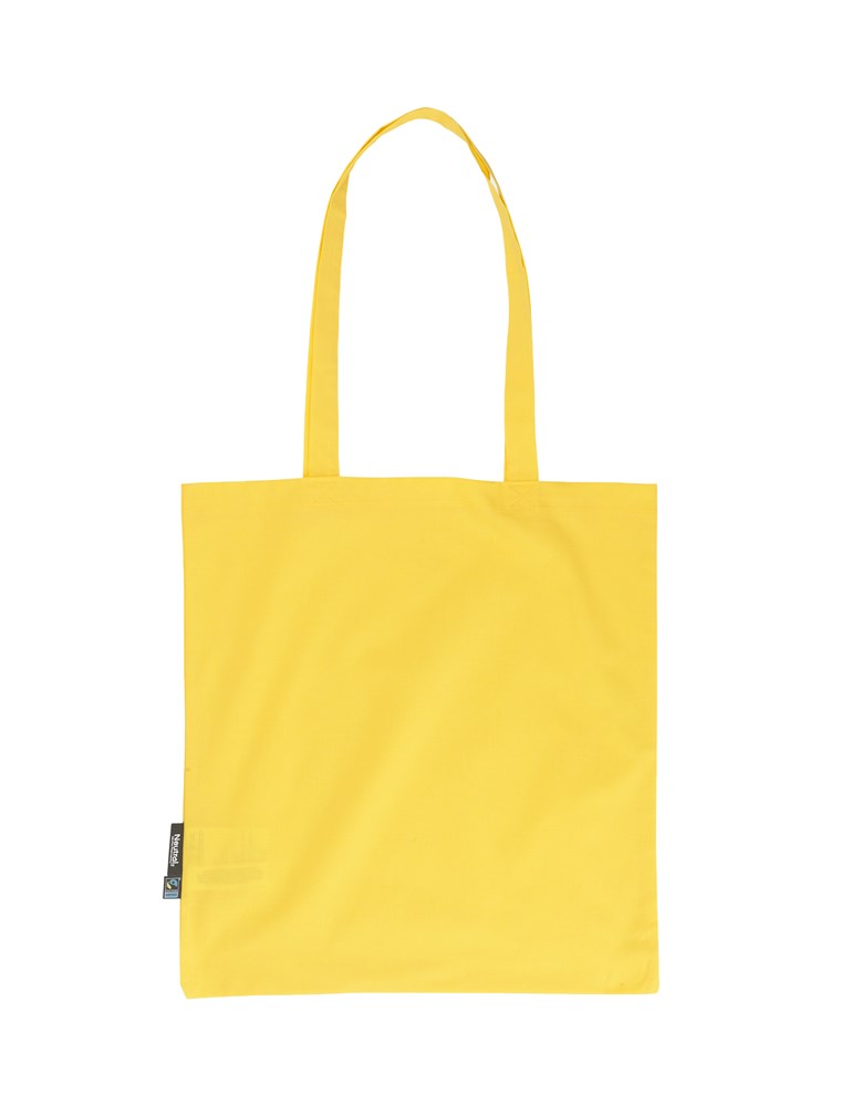 100% Organic Fairtrade Cotton - Canvas Weave - 120gsm. Lightweight Canvas weave - Long handles - Reinforced at stress points - Neutral® & Fairtrade flaglabels at side.