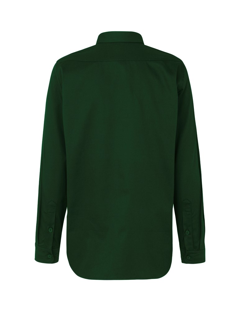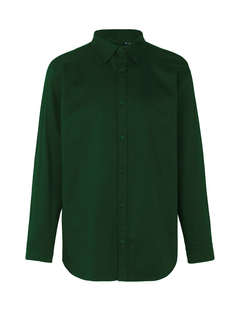80% Organic Fairtrade Cotton - 20% Recyled Polyester Twill Weave - 210gsm. Classic fit - Pointed collar - Placket & sleeve cuffs w. cotton buttons - Back yoke - Durable twill weaved cotton/rPET blend.
