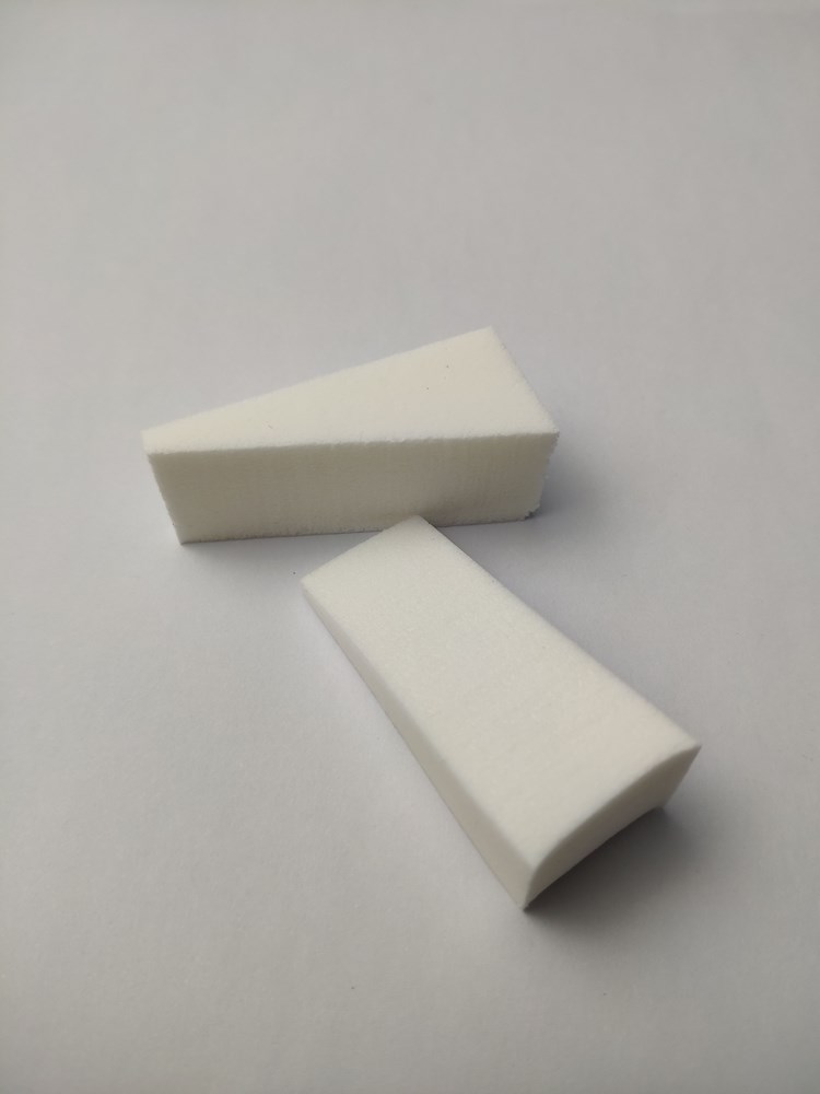Latex triangular sponge. Color: white. Recycled polybags with 100 pcs inside. Unit price is for each set of 100 pcs (yr EAN sticker attached on each set).