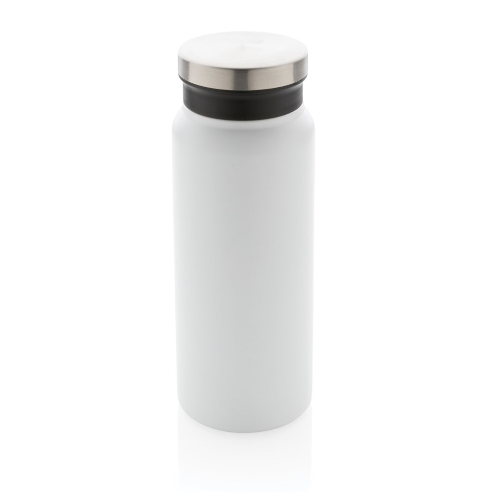 This RCS Recycled stainless steel vacuum bottle comes with a secure screw-on lid that features a wide opening for easy cleaning and filling. The additional PP insert ensures that the bottle is leakproof. This bottle is made from recycled stainless steel and features a double-wall construction to keep your favourite beverages warm for up to 5 hours or cold for up to 15 hours. Made with RCS (Recycled Claim Standard) certified recycled materials. RCS certification ensures a completely certified supply chain of the recycled materials. Total recycled content: 77% based on total item weight. BPA free. Capacity 600ml. Including FSC®-certified kraft gift box.