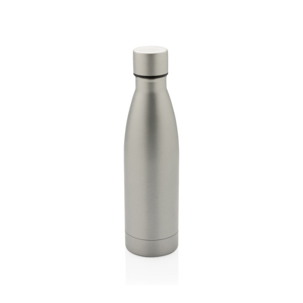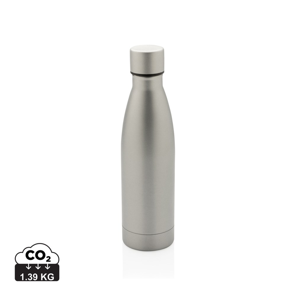 This RCS Recycled stainless steel vacuum bottle is designed for long-lasting enjoyment of your drinks! The double-wall recycled stainless steel vacuum construction keeps beverages chilled for up to15 hours or warm for up to 5 hours. This bottle fits most standard car cup holders so you can bring it with you anywhere. Made with RCS (Recycled Claim Standard) certified recycled materials. RCS certification ensures a completely certified supply chain of the recycled materials. Total recycled content: 93% based on total item weight. BPA free. Capacity 500ml. Including FSC®-certified kraft packaging.