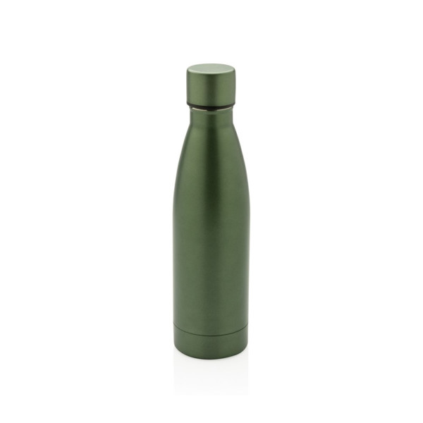 This RCS Recycled stainless steel vacuum bottle is designed for long-lasting enjoyment of your drinks! The double-wall recycled stainless steel vacuum construction keeps beverages chilled for up to15 hours or warm for up to 5 hours. This bottle fits most standard car cup holders so you can bring it with you anywhere. Made with RCS (Recycled Claim Standard) certified recycled materials. RCS certification ensures a completely certified supply chain of the recycled materials. Total recycled content: 93% based on total item weight. BPA free. Capacity 500ml. Including FSC®-certified kraft packaging.