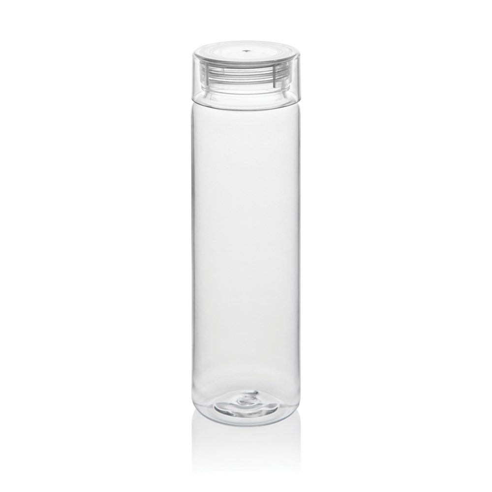 Stylish and minimalist water bottle made from 100% RCS certified RPET. Stay hydrated on the go with this handy water bottle, no matter the occasion. Large opening for easy cleaning. Hand wash only. This product is for cold drinks only. Total recycled content: 98% based on total item weight. BPA free.