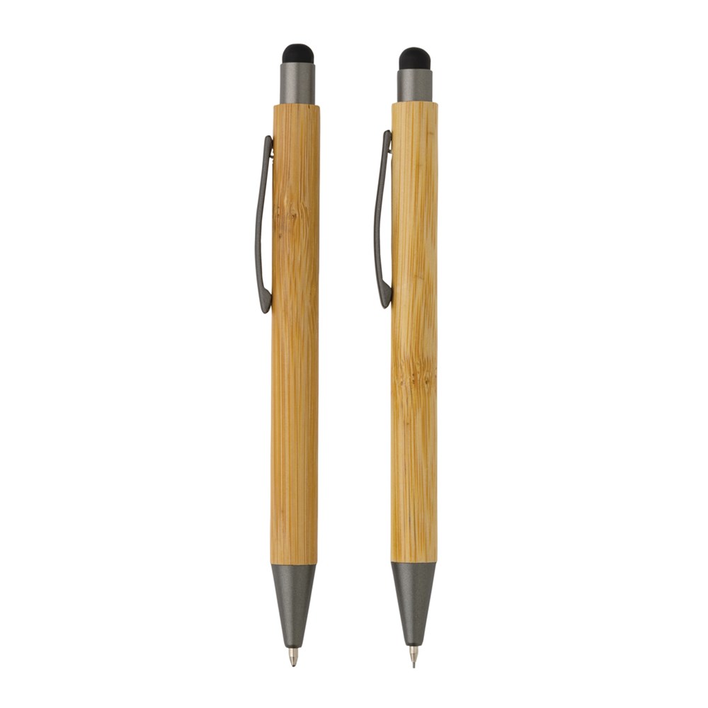 This modern looking pen set with ballpen and pencil is made with FSC®certified bamboo. The pen features a 800m writing refill with blue German ink and the pencil a 0.7mm lead. Packed in FSC®certified giftbox.