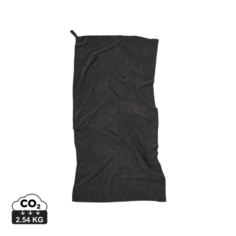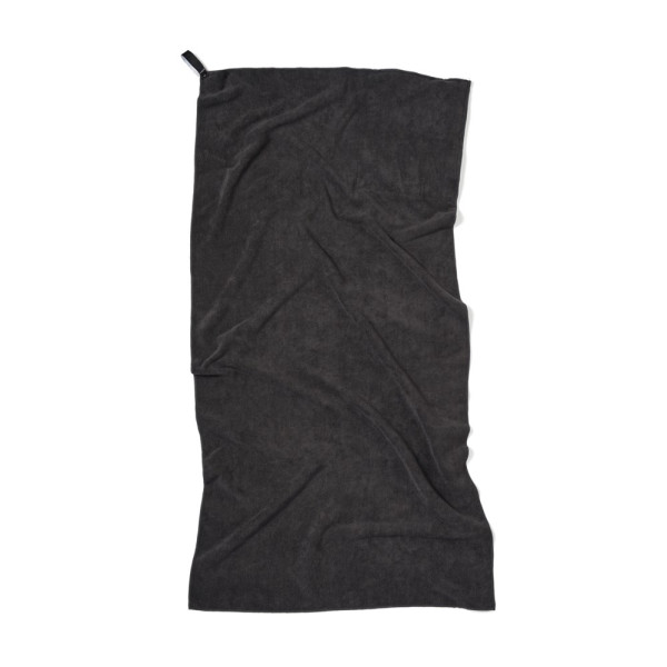 Made of microfibre and partially recycled PET bottles. Lightweight and compact. Its unique terry cloth structure can absorb more water and dries three times faster than a traditional towel. Ideal for outdoor activities, sports and travel. This size is excellent for use in the gym. Made from 52% GRS (Global Recycle Standard) certified recycled materials, with GRS certification guaranteeing fully certified supply chains of recycled materials. Total recycled content based on total product weight.