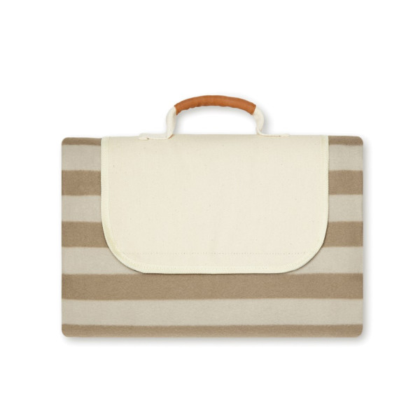 Picnic blanket in soft fleece with cotton canvas and details in PU. Clever construction makes it easy to fold up and take with you. The fleece is crafted GRS certified recycled PET. The back is made in PEVA, which repels water. Certified by GRS (Global Recycled Standard), GRS certification guarantees that the entire supply chain of the recycled materials is certified. The total recycled content is based on the overall product weight. This product contains 54% GRS recycled fleece.
