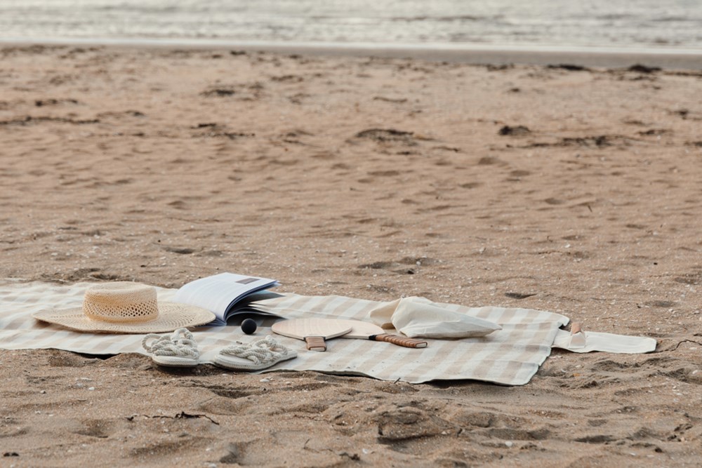 Picnic blanket in soft fleece with cotton canvas and details in PU. Clever construction makes it easy to fold up and take with you. The fleece is crafted GRS certified recycled PET. The back is made in PEVA, which repels water. Certified by GRS (Global Recycled Standard), GRS certification guarantees that the entire supply chain of the recycled materials is certified. The total recycled content is based on the overall product weight. This product contains 52% GRS recycled fleece.