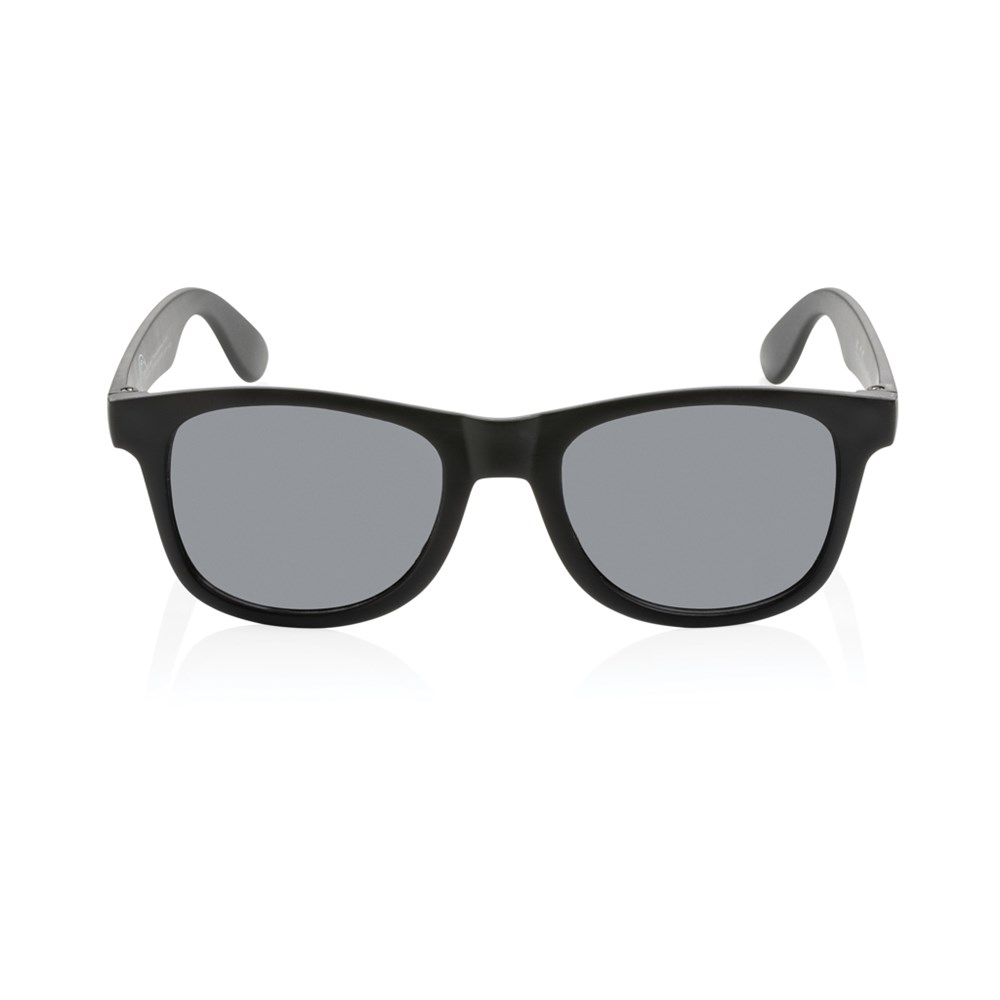 Sunglasses made with RCS certified recycled PP frame. Recycled content of frame is 100%. Total recycled content: 66% based on total item weight. RCS certification ensures a completely certified supply chain of the recycled materials. The lenses are smoky acrylic and conform to EN ISO 12312-1,UV 400 and CAT 3. Packed in an FSC® kraft sleeve.