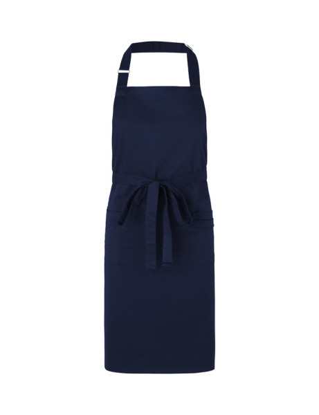 80% Organic Fairtrade Cotton - 20% Recyled Polyester Twill Weave - 210gsm. Extra Durable twill weaved cotton/rPET blend - Adjustable strap w. buckle at neck - Tie bands at waist - Two side pockets - Strap for kitchen towels - Two pencil pockets.