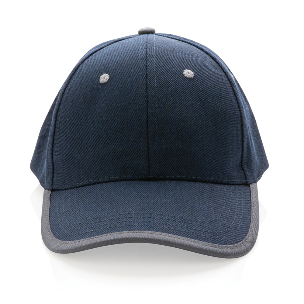 Tell a true story about sustainability and wear it with pride! This 6 panel contrast cap with curved visor is made with brushed recycled 280gr cotton that is embedded with AWARE™ tracer technology. With AWARE™, the use of genuine recycled fabric materials and water reduction impact claims are guaranteed. Save water and use genuine recycled fabrics. If you choose this item you save 250 litres of water. With the focus on water, 2% of proceeds of each Impact product sold will be donated to Water.org. The contrast cap has a dark grey binding and velcro closure. Water savings are based on figures when compared to conventional fibre. This calculated indication is based on reliable LCA data as published by Textile Exchange in their Material Snapshots 2016.