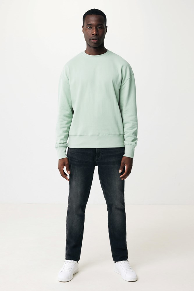 Unisex relaxed fit crew neck made from 100% cotton, of which 50% recycled and 50% organic, in 340 G/M². The sweater has dropped shoulders, a round neckline, wider long sleeves and 2x2 rib. The inside is soft-brushed fleece for extra comfort. The use of genuine recycled & organic fabric materials and environmental impact claims are guaranteed, by using the AWARE™ disruptive physical tracer and blockchain technology. By scanning the QR code, you will gain access to a dedicated digital passport of the product. 2% of proceeds of each product sold will be donated to Water.org. This product is OEKO-TEX® STANDARD 100 2303045 Centexbel. certified. Due to the nature of recycled yarns, impurities and color variations may appear.