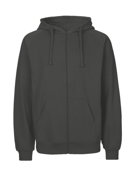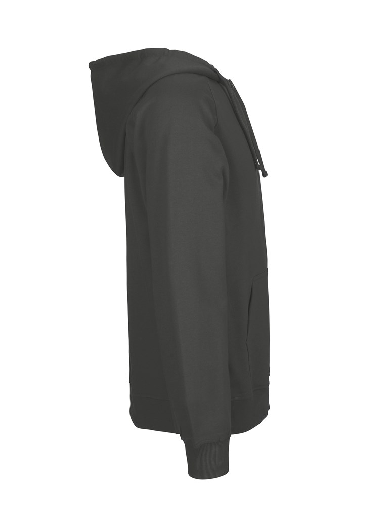 100% Organic Fairtrade Cotton - Fleece, brushed - 300gsm. Casual fitted - Double-lined hood - Adjustable flat strings - Kangaroo pocket - Rib knitted sleeve cuffs & waistband - YKK-Zipper at front - Neck tape - Ringspun combed cotton