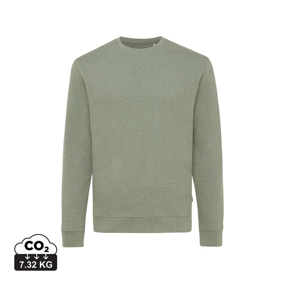 Unisex classic fit crew neck made from 100% cotton, of which 50% is recycled and 50% organic, in 340 G/M². It is the same crew neck sweater as our IQONIQ ‘Zion’ crew neck. One difference: we eliminate the dyeing process. We have blended recycled cotton in its existing colour with virgin organic cotton, which creates the beautiful heather mélange effect. The use of genuine recycled & organic fabric materials and environmental impact claims are guaranteed, by using the AWARE™ disruptive physical tracer and blockchain technology. By scanning the QR code you will gain access to a dedicated digital passport of the product. 2% of proceeds of each sold product will be donated to Water.org. This product is OEKO-TEX® STANDARD 100 2303045 Centexbel. certified. Due to the nature of recycled yarns, impurities and colour variations may appear.