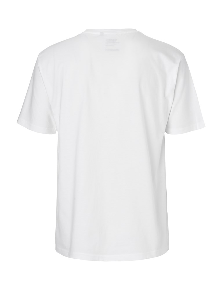 100% Organic Fairtrade Cotton - Single Jersey Knit - 185gsm. Classic fitted - Regular short sleeves - Crew neck - Elastane rib knitted neckband - Neck tape - Ringspun combed cotton.
