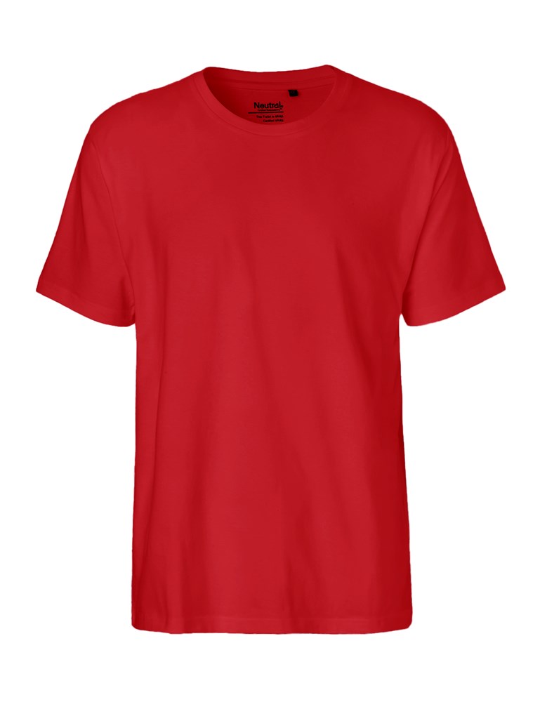100% Organic Fairtrade Cotton - Single Jersey Knit - 185gsm. Classic fitted - Regular short sleeves - Crew neck - Elastane rib knitted neckband - Neck tape - Ringspun combed cotton.