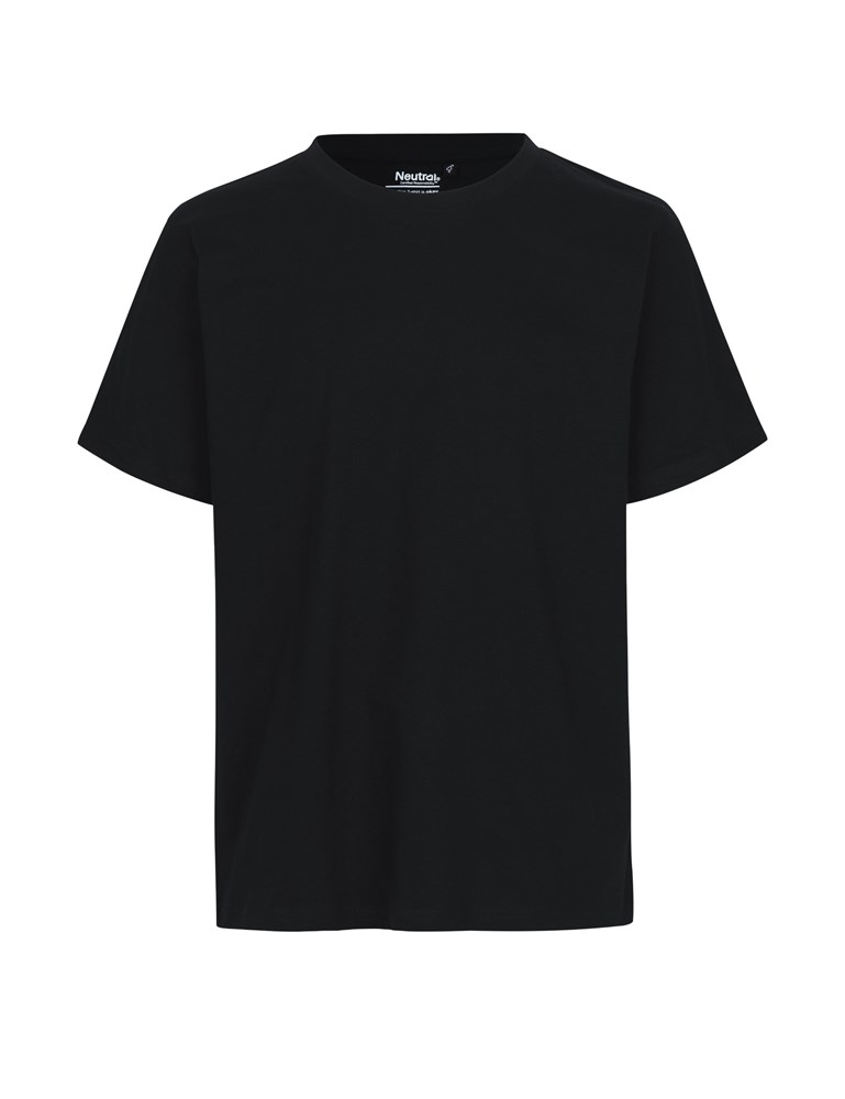 100% Organic Fairtrade Cotton - Single Jersey Knit - 155gsm. Loose, casual fit - Regular sleeves - Crew neck - Elastane rib knitted neckband - Neck tape - Ringspun combed cotton
