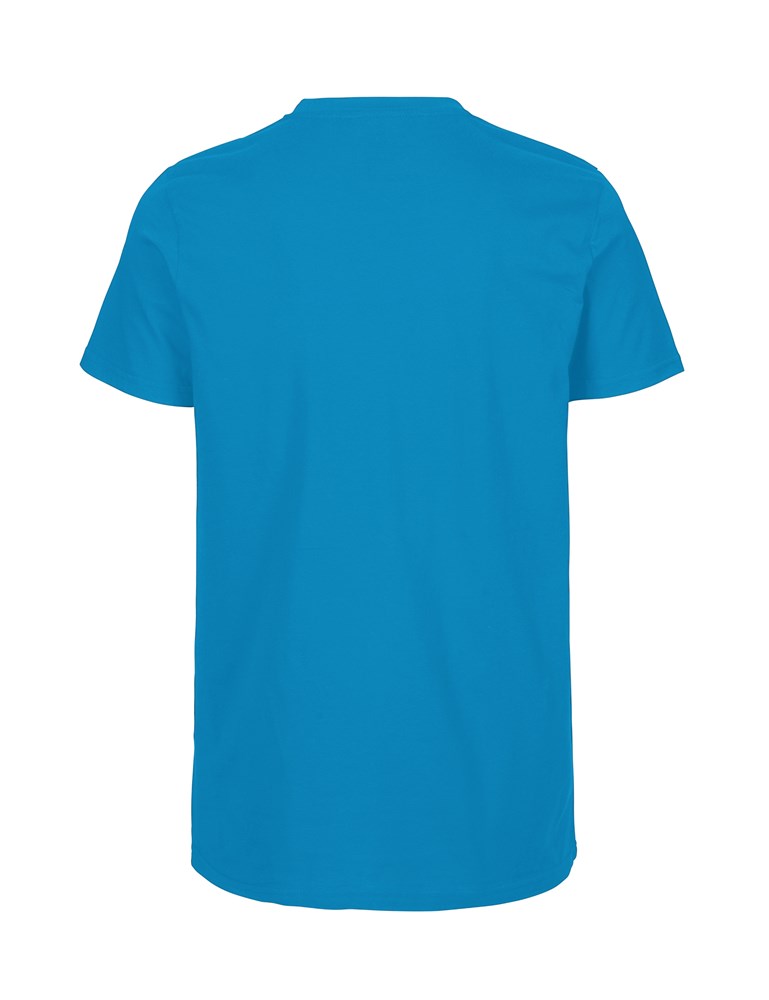 100% Organic Fairtrade Cotton - Single Jersey Knit - 155gsm. Slightly fitted at shoulders & sleeves - Crew neck - Elastane rib knitted neckband - Neck tape - Ringspun combed cotton.
