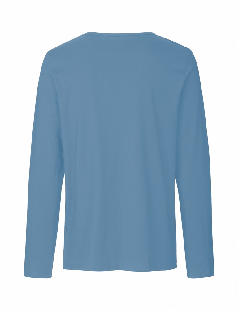 100% Organic Fairtrade Cotton - Single Jersey Knit - 155gsm. Slightly fitted - Long regular sleeves - Round neck - Double- layered neckband - Ringspun combed cotton