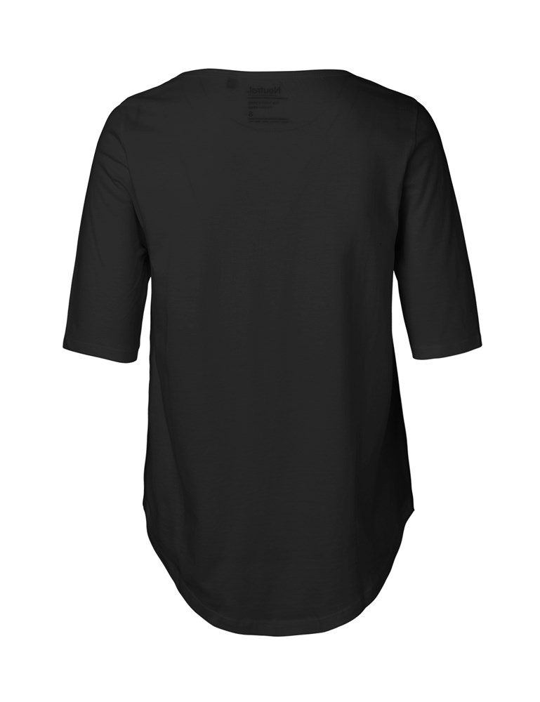 100% Organic Fairtrade Cotton - Single Jersey Knit - 155gsm. Loose fit - Elbow length sleeves - Curved Hem - Round scoop neck - Double-layered neckband - Ringspun combed cotton