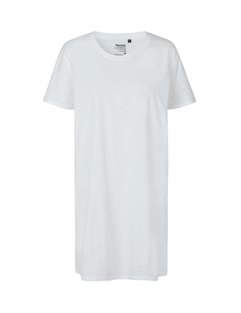 100% Organic Fairtrade Cotton - Single Jersey Knit - 155gsm Loose, casual fit - Long length - Round neck - Elastane rib knitted neckband - Neck tape - Ringspun combed cotton