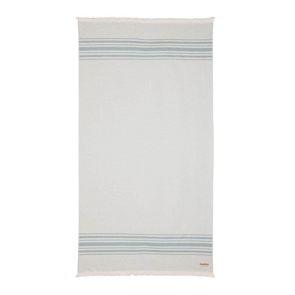 This lightweight, highly absorbent, sand-resistant, and quick dry towel is one of the best sustainable towels out there. Hammam towels are multifunctional: you can also use it as a picnic, baby blanket or as a yoga, beach, and gym towel. Even as a table cloth. Best of all, the thin material makes it ultra-portable and easy to toss in your beach bag, suitcase or over your shoulder. This towel contains 12% recycled cotton and is super soft and silky to the touch. With AWARE™ tracer that validates the genuine use of recycled cotton. 2% of proceeds of each Impact product sold will be donated to Water.org. Made in Portugal.