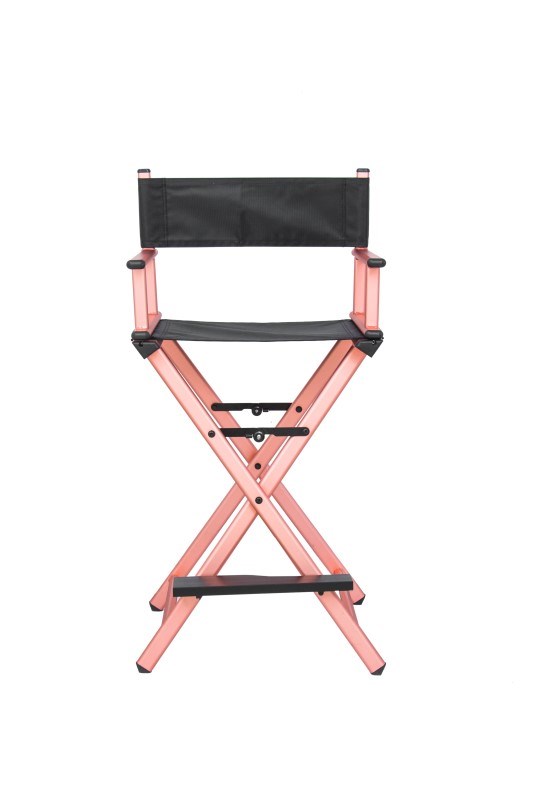 Make-up Chair. Size: 550*420*1160mm. Material: 1.2mm aluminum frame + 1680D nylon for back and rest cloth. Special design for the plastic parts to make sure the chair will not slide even on the wooden floor. Comfortable footrest for ease of application at an ideal height. Lightweight and durable material for maximum bearing of 120KGS. Foldable, Can be put into a chair bag for easy travel (Net weight: 5KG per piece).