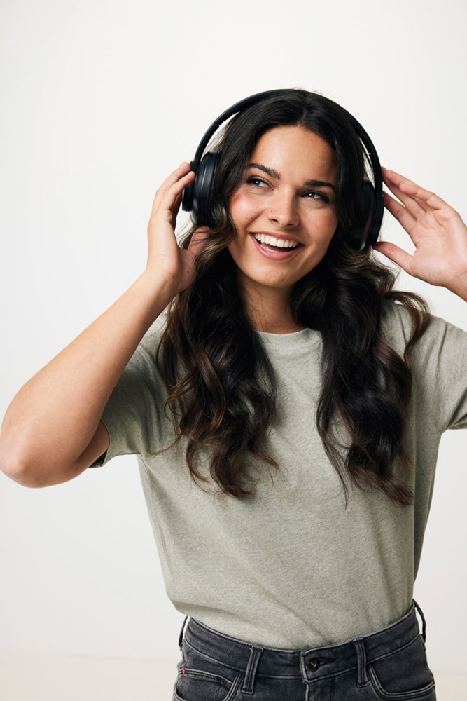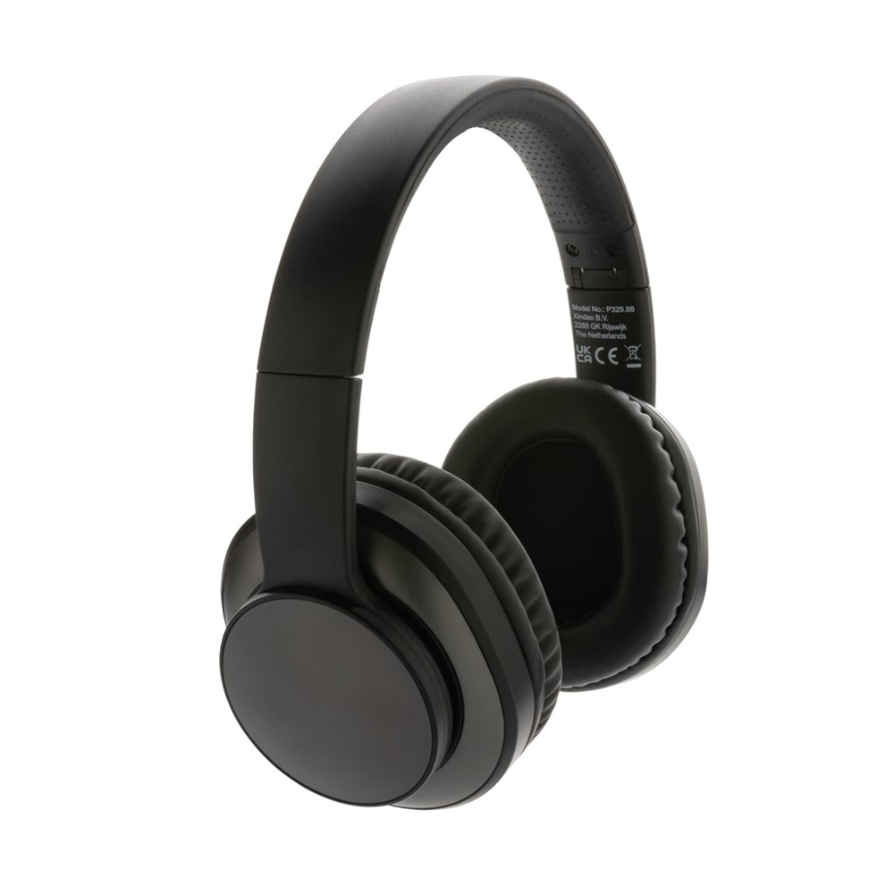 Foldable wireless headphone and strong bass. Made with RCS (Recycled Claim Standard) certified recycled aluminium and ABS. Total recycled content: 70% based on total item weight. RCS certification ensures a completely certified supply chain of the recycled materials. Aluminium does not lose its characteristics in the recycling process and can be recycled endlessly. Including recycled type C charging cable made from RCS certified recycled aluminum, TPE and PET. The 600 mah battery allows a playtime up to 15 hours and can be fully re-charged in 2 hours. With BT 5.3 for smooth connection up to 10 metres. Packed in FSC® mix packaging. Item and accessories 100% PVC free. With MIC to answer calls.